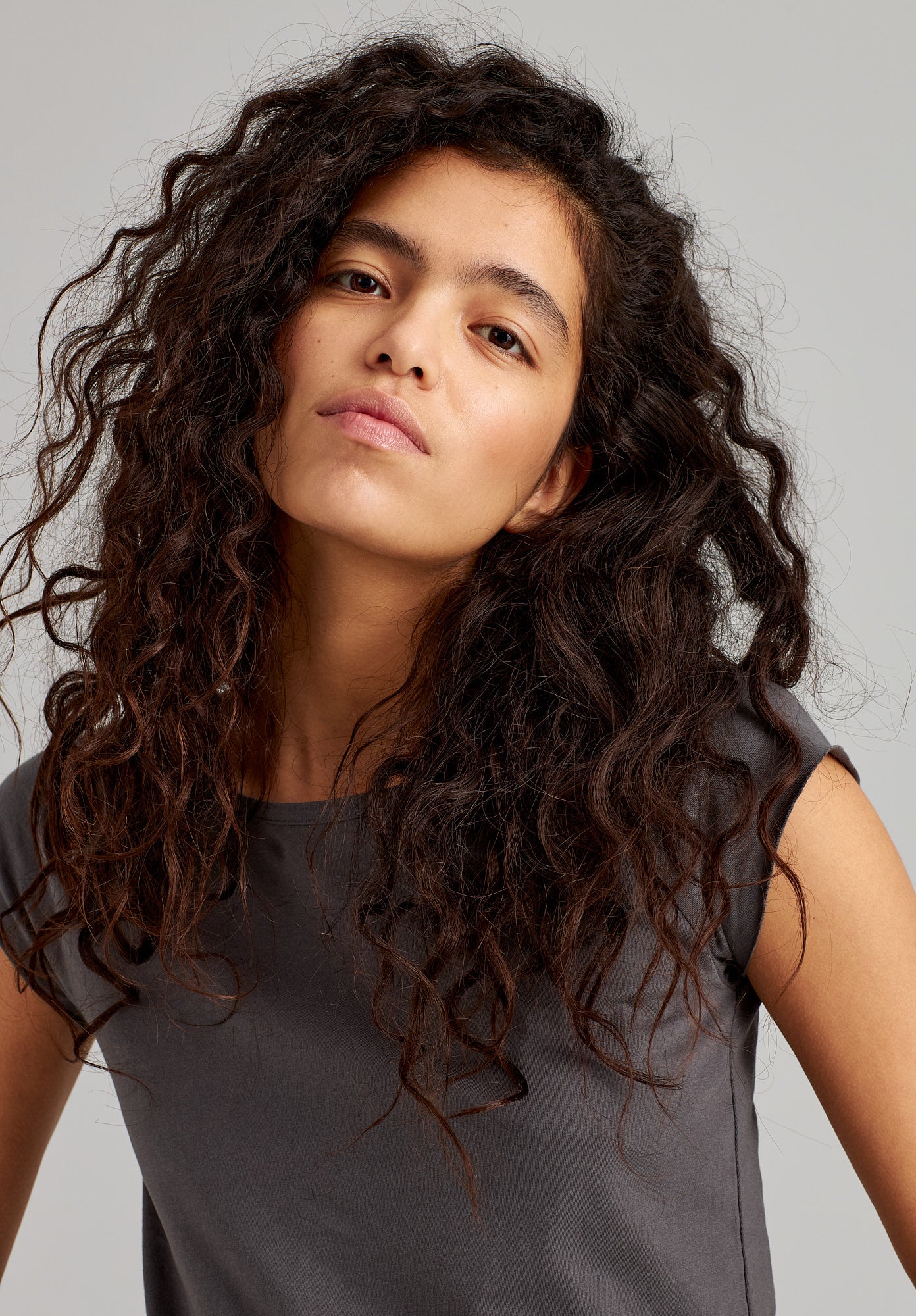 Das TT01 Cap Sleeve T-Shirt besteht aus leichtem, weichem Single Jersey aus Bio-Baumwolle und bietet ein angenehmes Tragegefühl. Die Cap Sleeves fallen sanft über die Schulter und verleihen dem T-Shirt eine feminine, moderne Linie. Der ovale Ausschnitt betont den cleanen Look. Die offene, nicht umgenähte Ärmelkante sorgt für eine leichte Optik und unterstreicht das reduzierte Design.