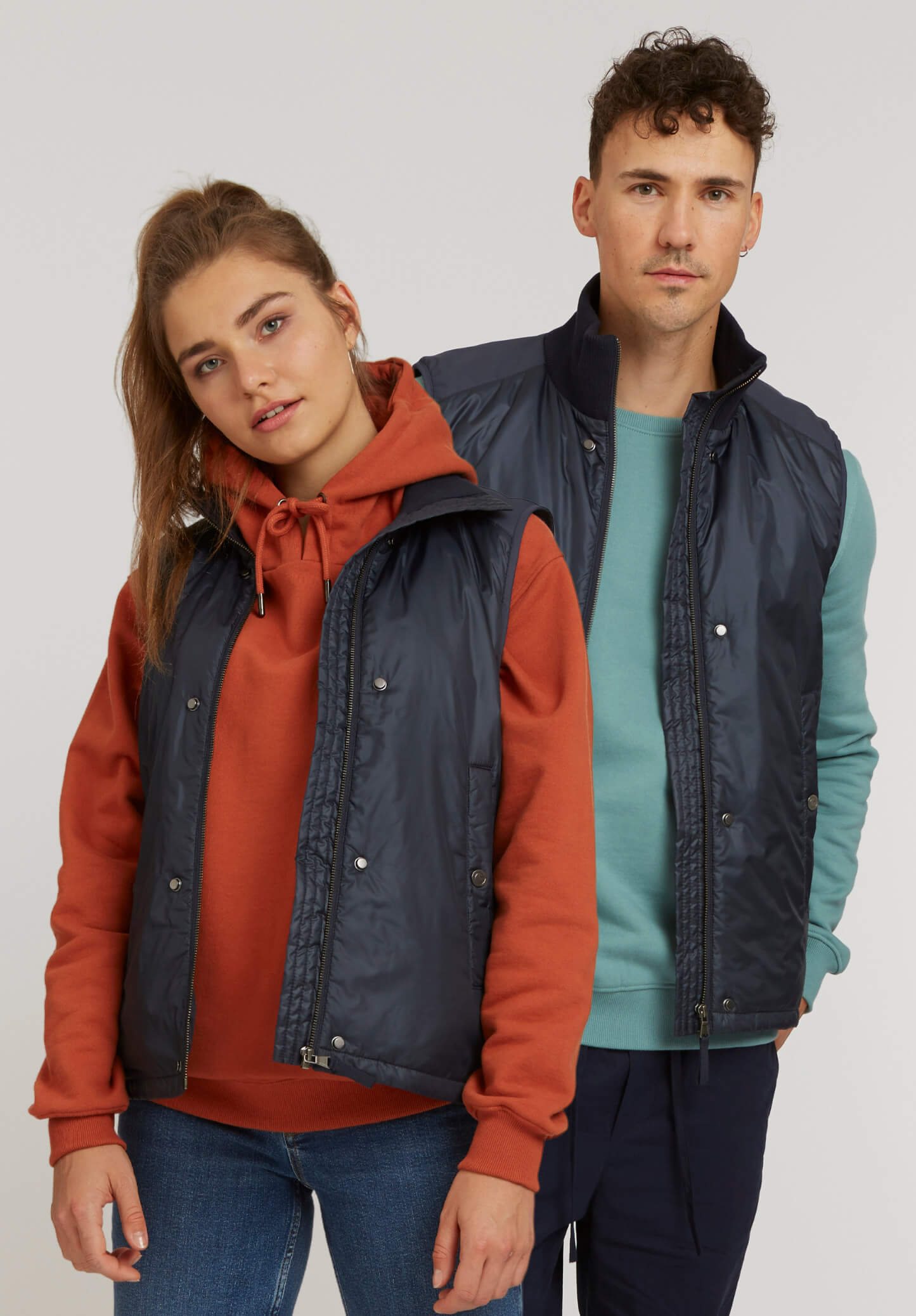 Kapok Weste mit unterlegtem Reißverschluss, elastischem Strickkragen, zwei seitlichen Einschubtaschen mit Druckknöfpen, einer großen Innentasche und reflektierendem ThokkThokk Druck auf der Rückseite. Die Weste ist mit dem TT2030 Kapok Raglan Parka für Frauen und dem TT2027 Kapok Parka für Herren als extra Futter an besonders kalten Wintertagen kombinierbar. Sie kann ganz einfach anhand von Druckknöpfen innen befestigt werden.