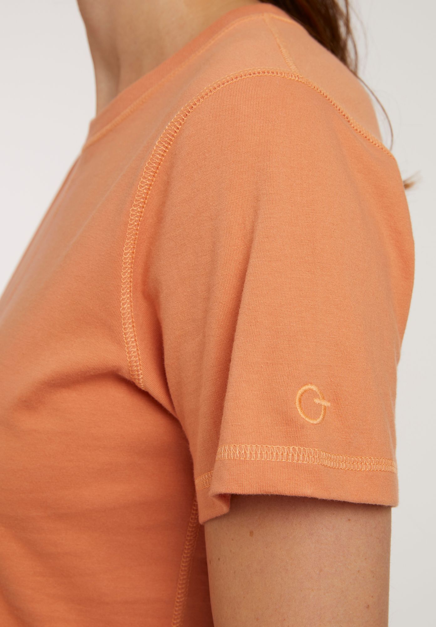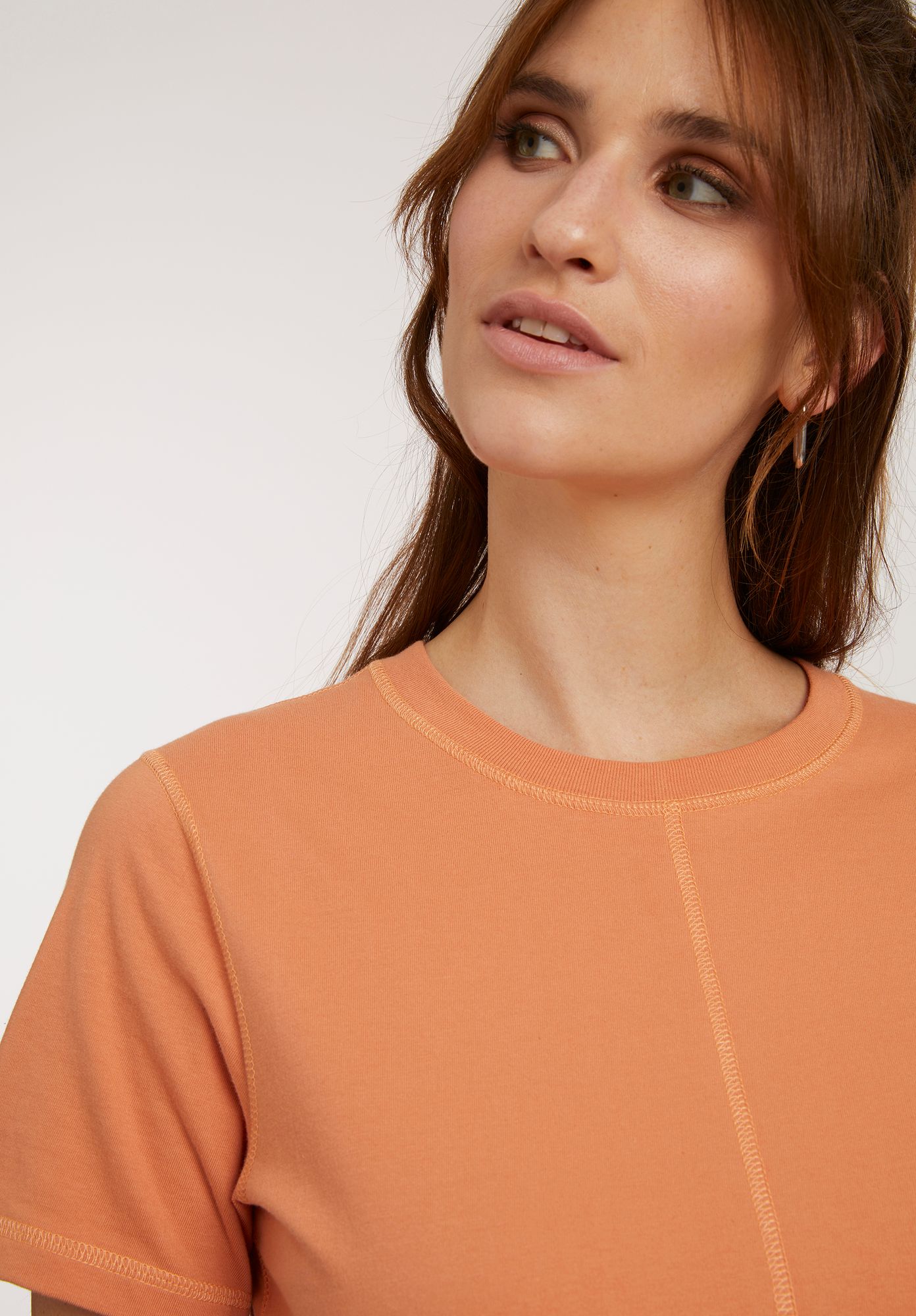 Klassisches, gerade geschnittenes Damen T-Shirt aus geschmeidiger Biobaumwolle und mit 1x1 Rippstrick am Halsausschnitt.