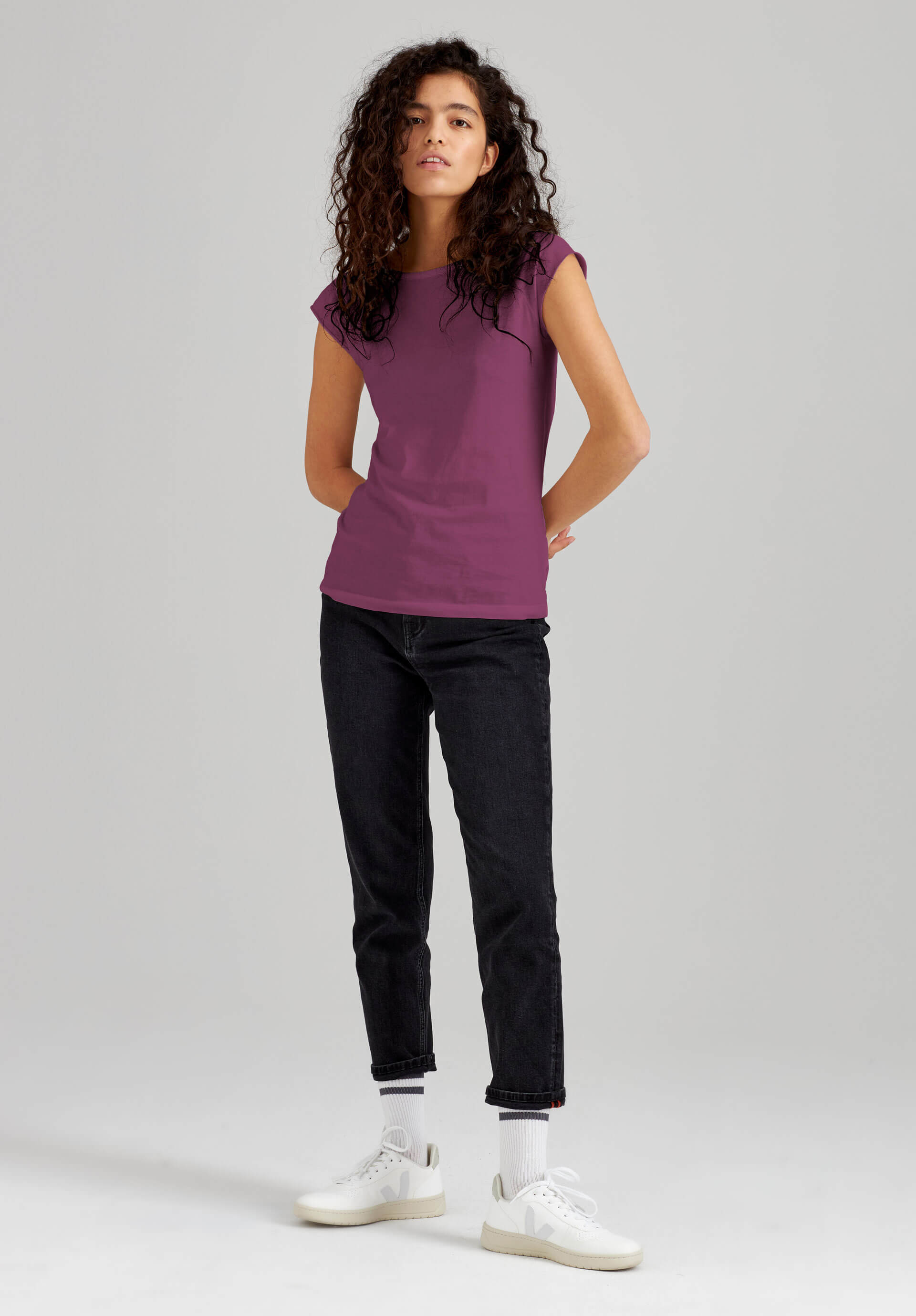 TT01 Cap Sleeve T-Shirt plum (GOTS, vegan)
