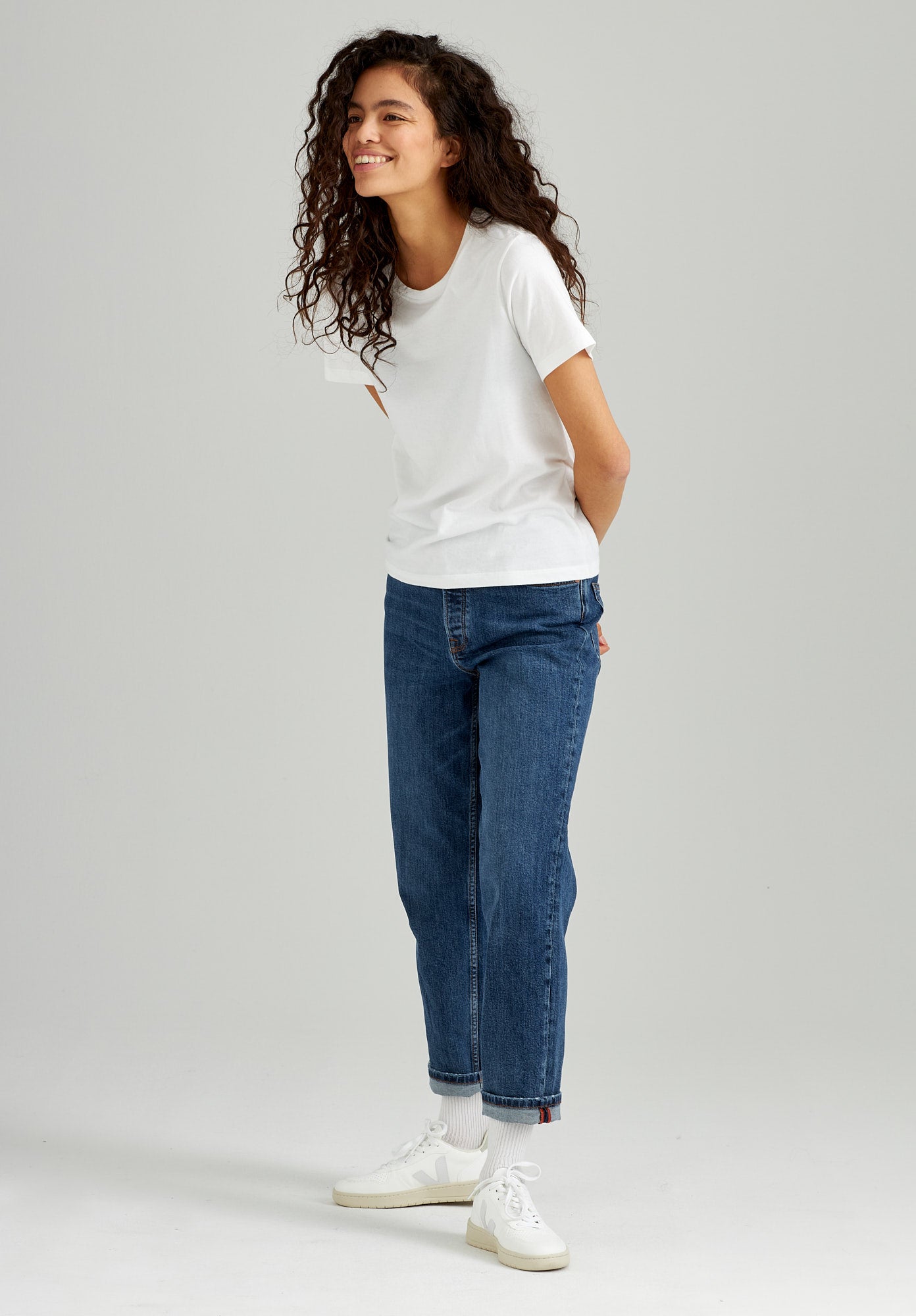 Das TT85 T-Shirt besteht aus geschmeidiger Bio-Baumwolle und bietet ein angenehmes, natürlich weiches Tragegefühl. Der gerade Schnitt und der klassische Rundhalsausschnitt erzeugen eine klare, zeitlose Silhouette. Der 1x1 Rippstrick am Hals sorgt für eine hochwertige, stabile Optik und einen komfortablen Sitz. Das T-Shirt wirkt clean, modern und lässt sich vielseitig kombinieren.