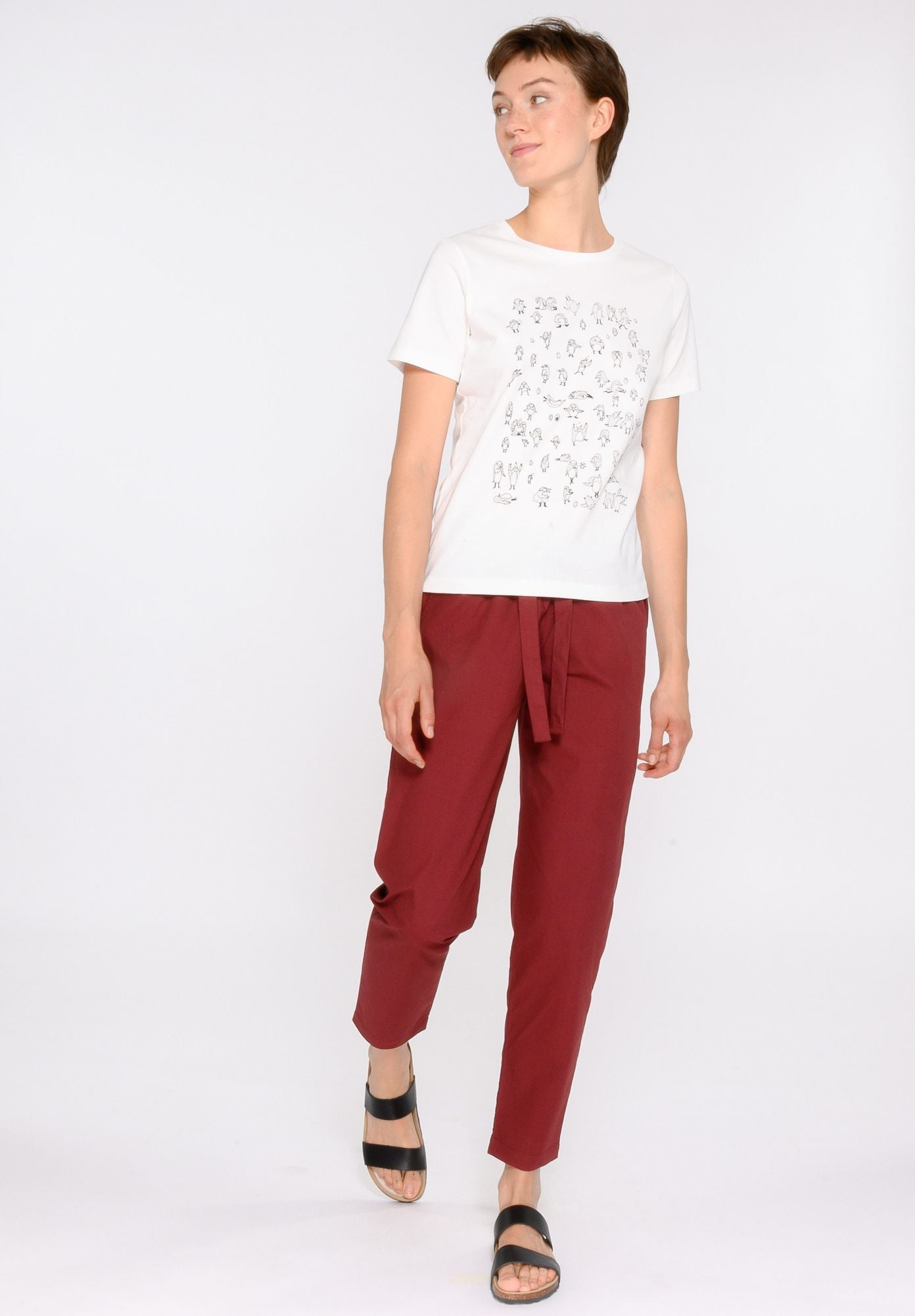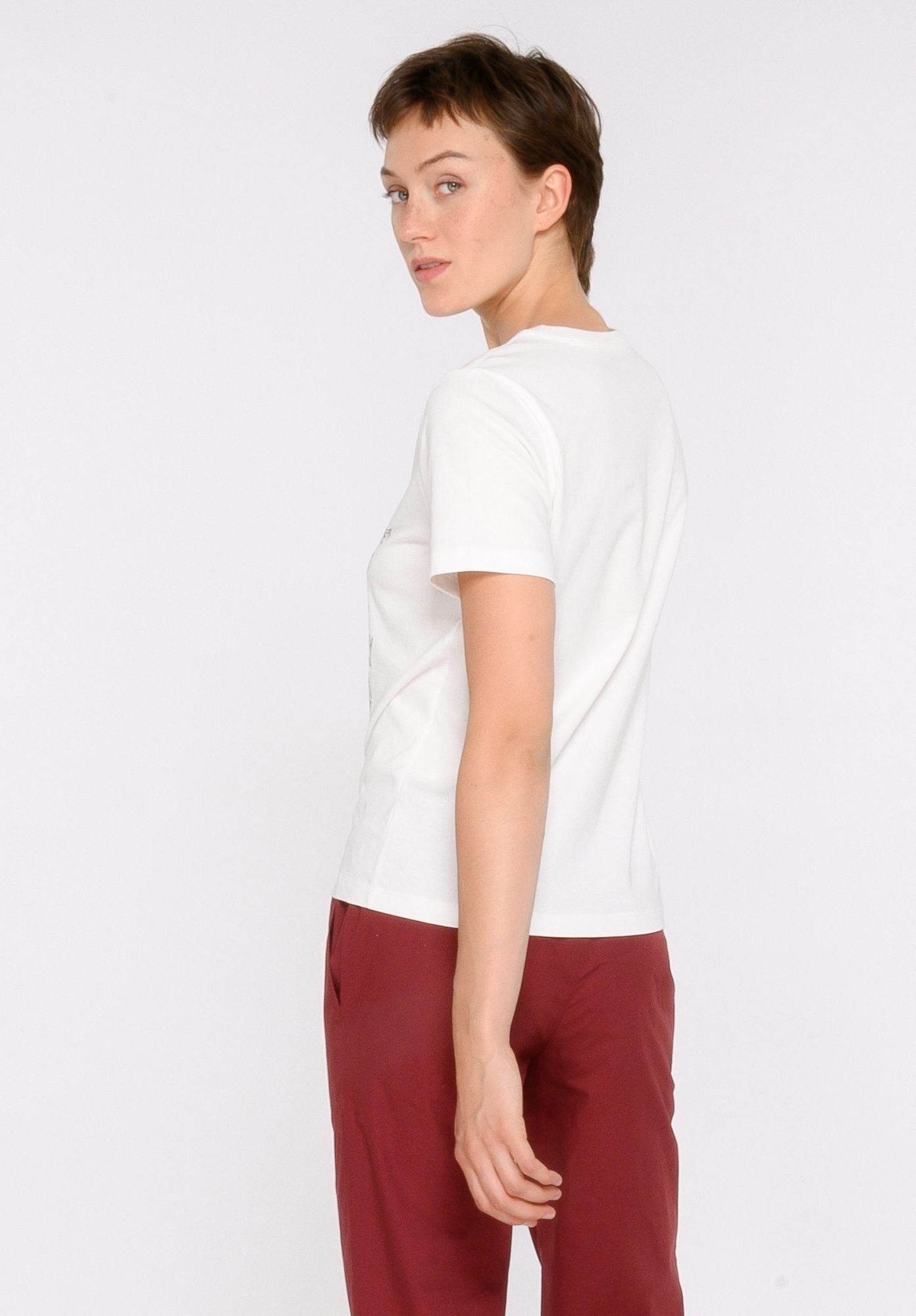 Klassisches, gerade geschnittenes Damen T-Shirt aus geschmeidiger Biobaumwolle mit 1x1 Rippstrick am Halsausschnitt und unifarbenem Frontprint.